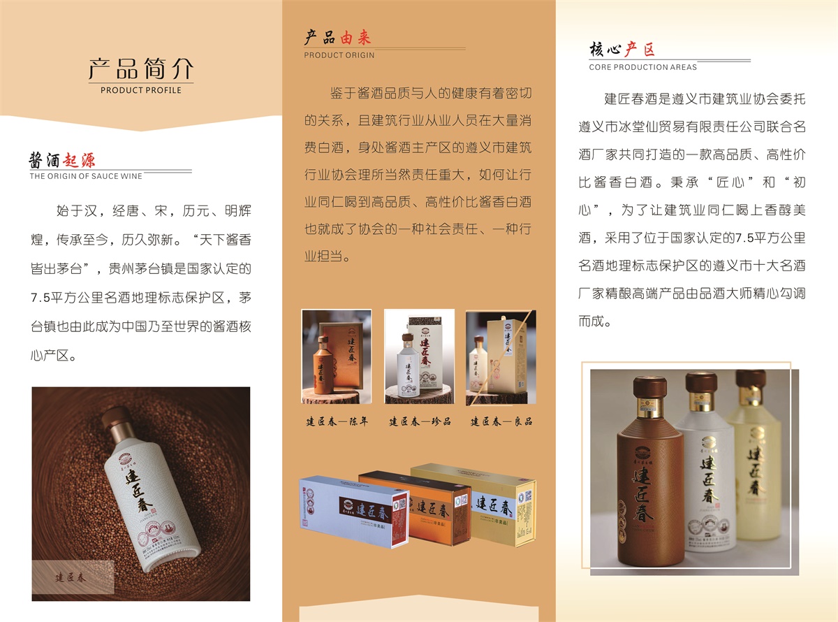 中国酱香型白酒的发源地茅台镇,仅有7.5平方公里被认定为酱香白酒的核心产区,独特的地理环境和古老酿酒技艺的完美叠加,是这里成为中国顶级酱香白酒的天然酿场,建匠春酒沐浴着千年酿造形成的微生物群落,缔造了高端酱酒---建匠春