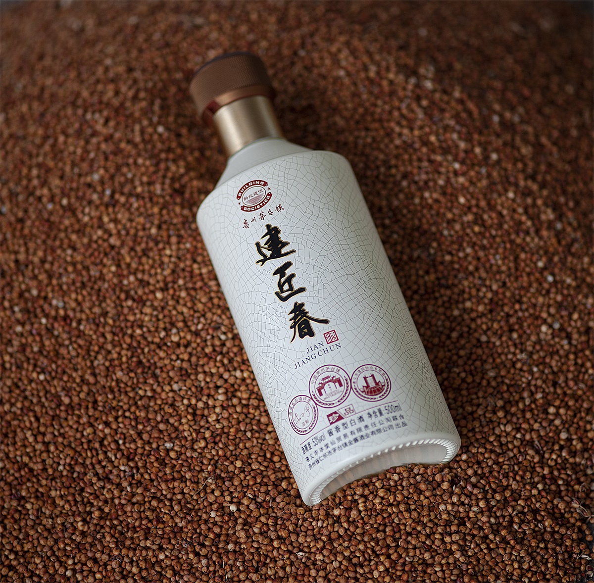 建匠春酒沿用了12987的工艺,端午踩曲,重阳下沙,一年一个生产周期、两次投料、九次蒸煮、八次发酵、七次取酒。是茅台镇口传心授千年的酿酒技艺。